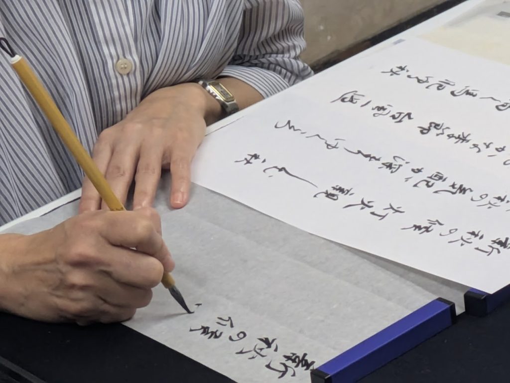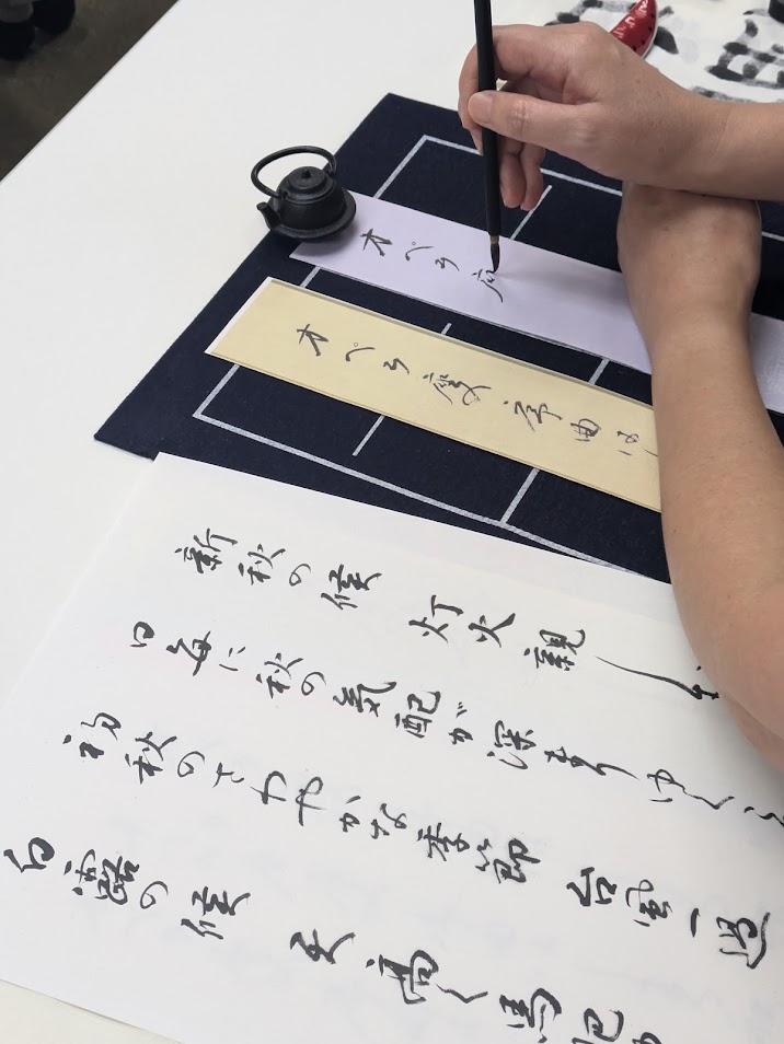 You will begin by practicing basic fine-brush strokes and receive a model of the “Iroha Song.” Through this, you will learn the fundamentals of kana writing.